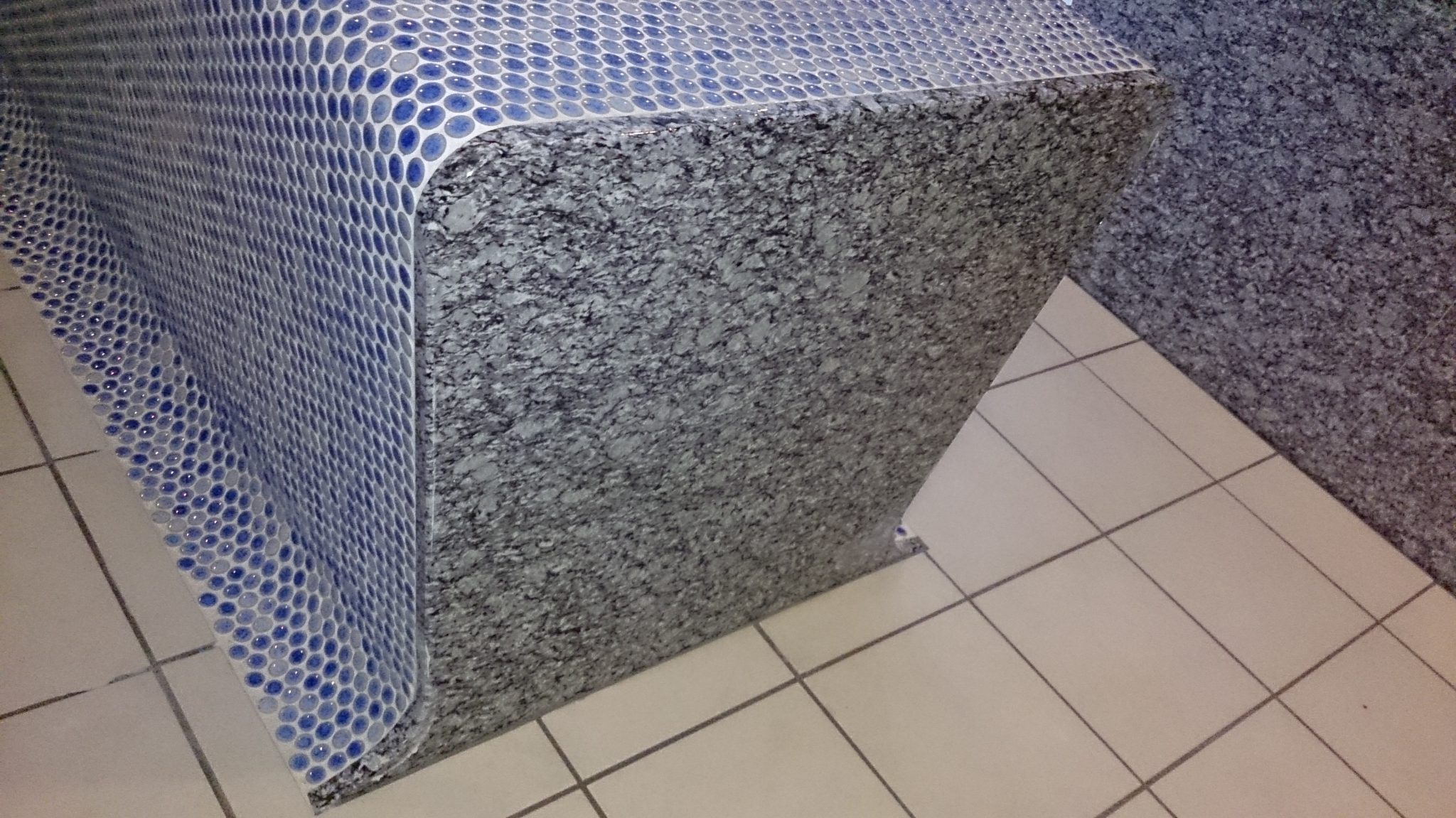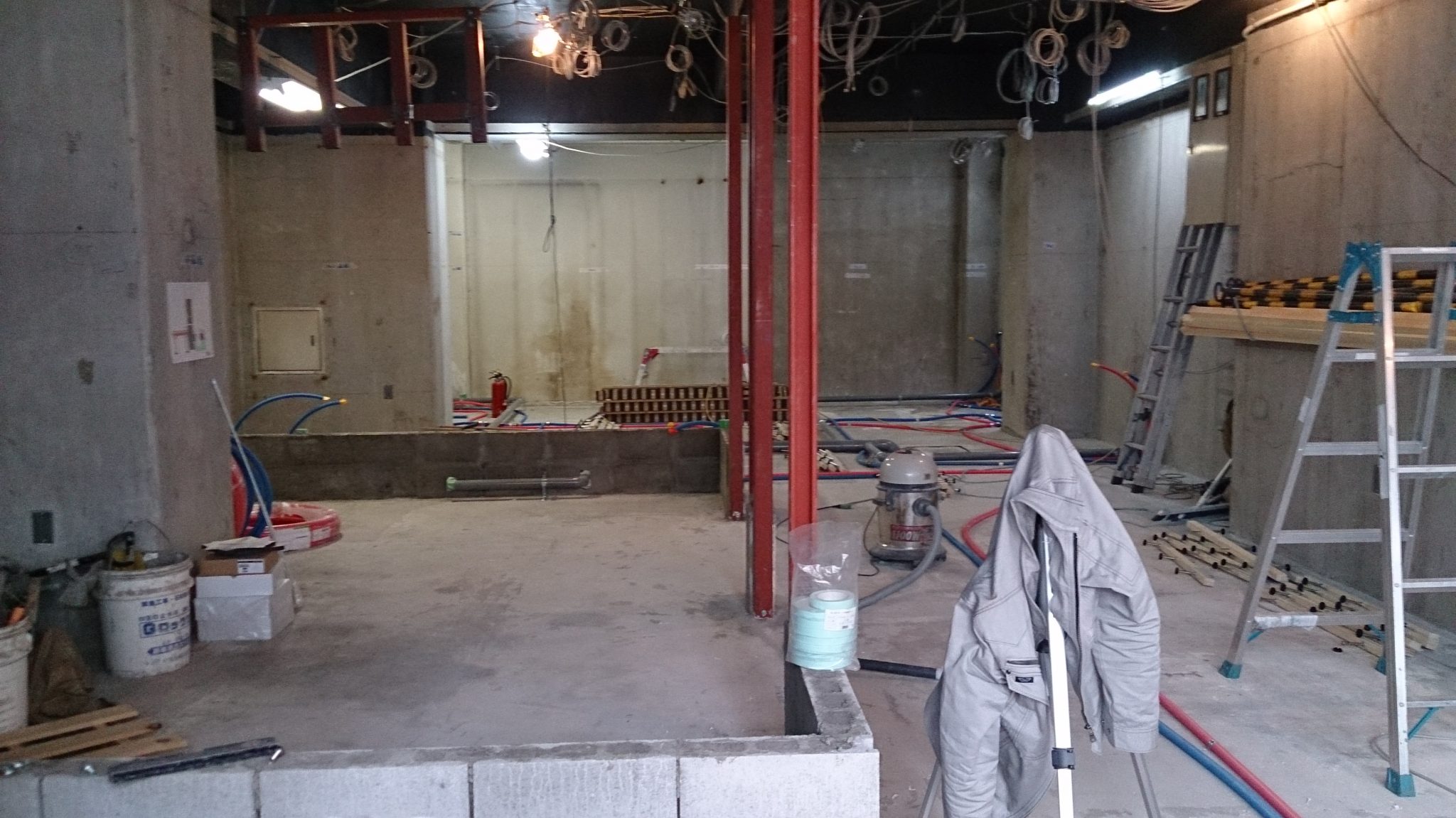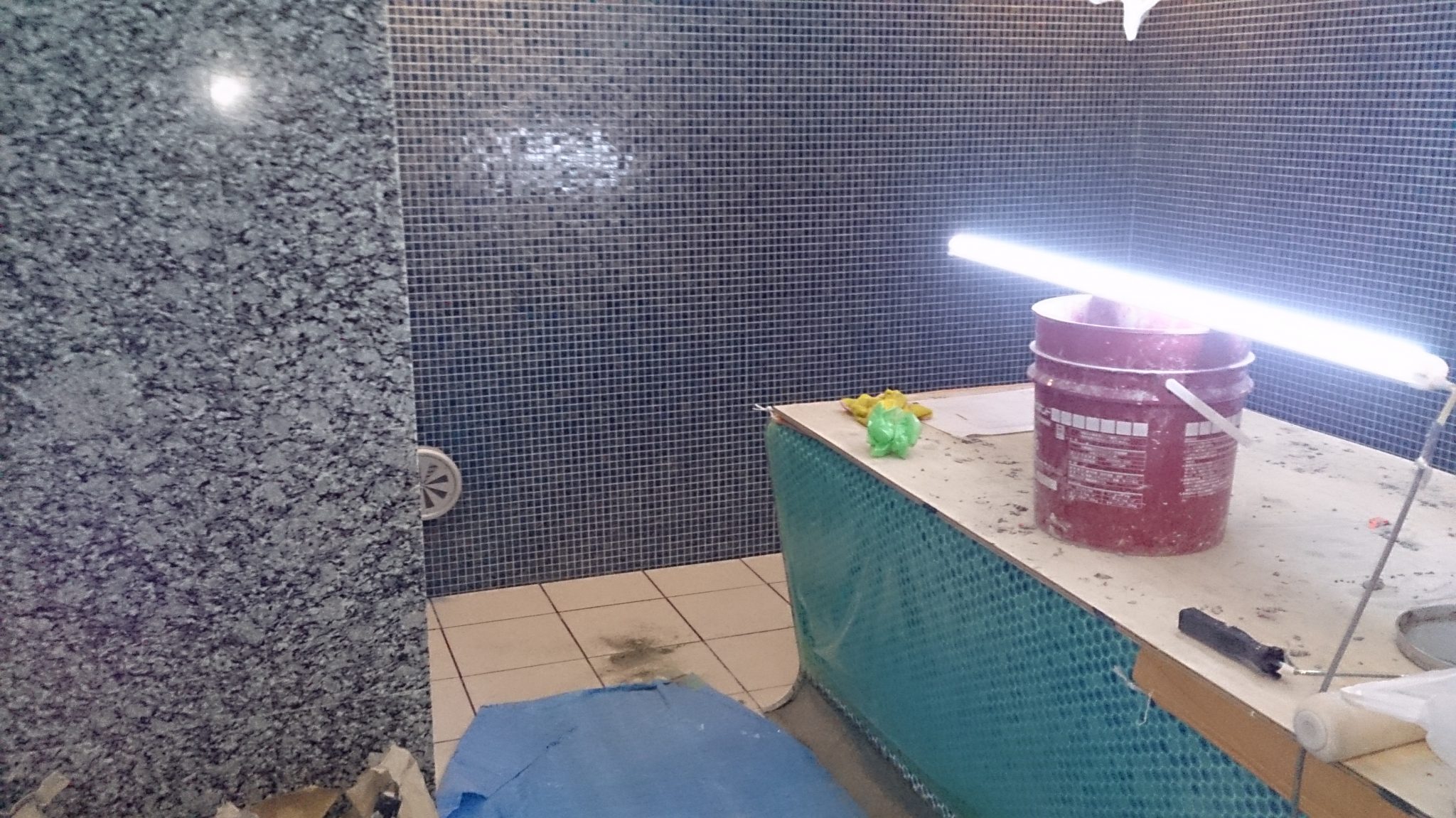 だいぶ工事も進んできて壁にはモザイクタイル、柱には御影石貼られてます。
