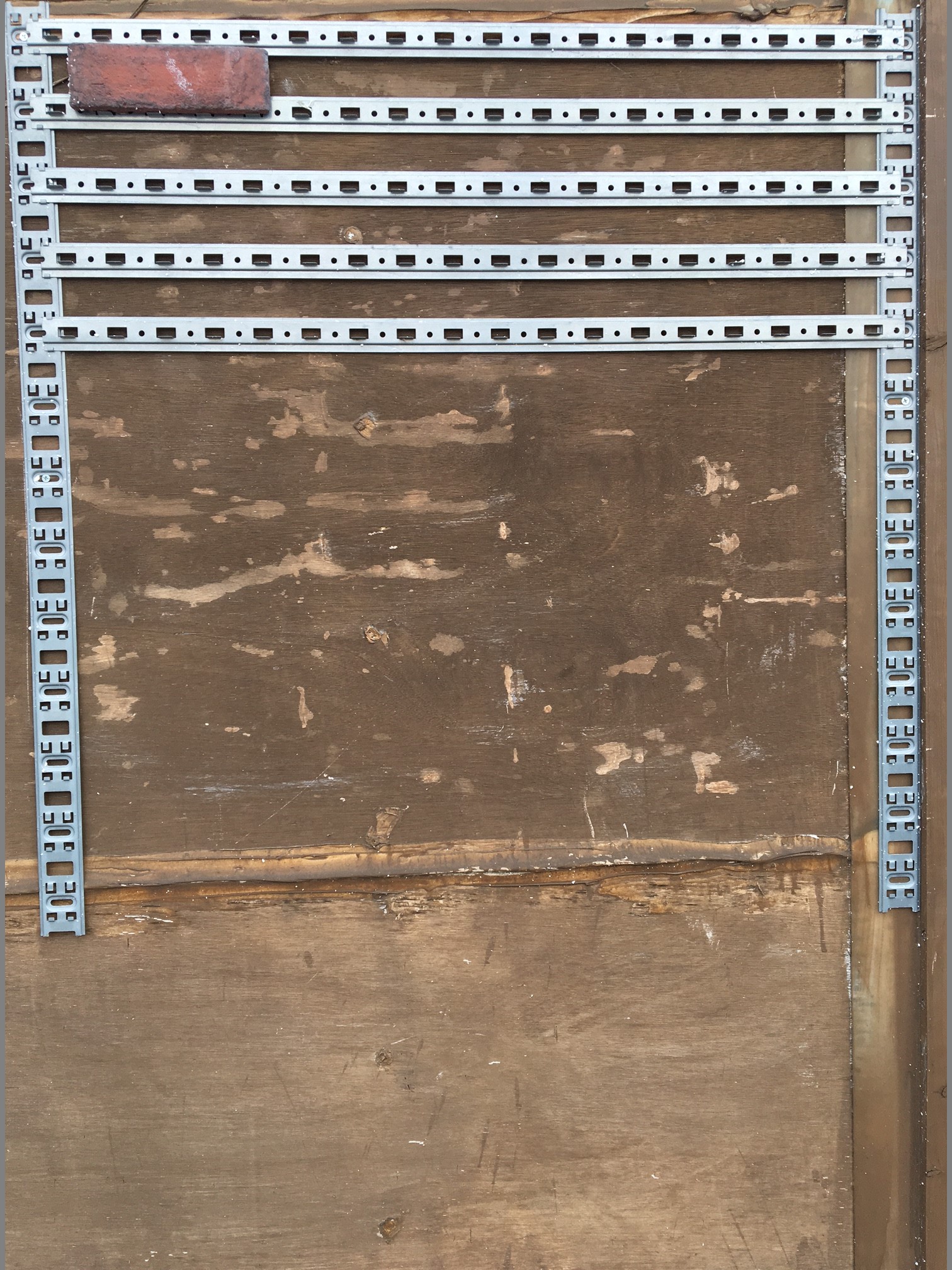 金属の網を貼って金物を縦横に取り付けてから貼ります。