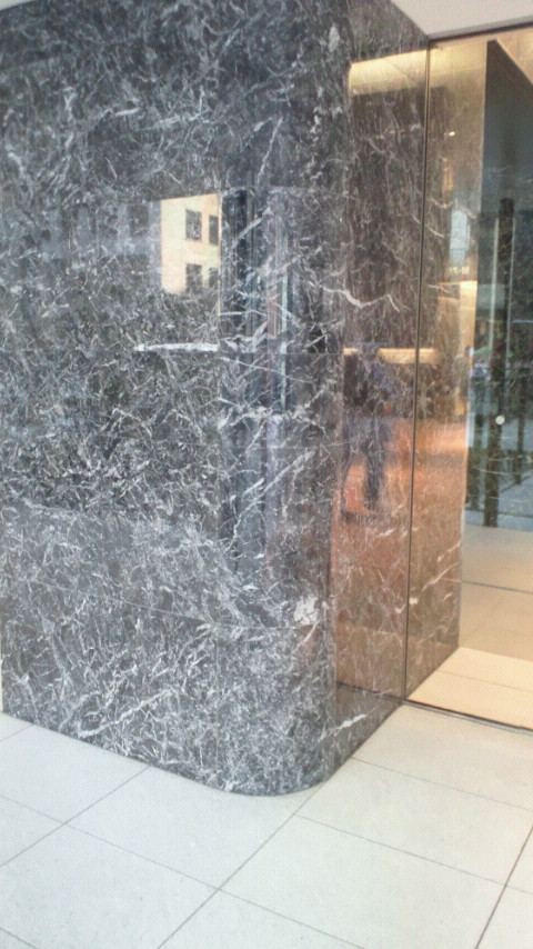 グリジオカルニコは濃いグレー地に白い模様がランダムに入る重量感のある大理石です。